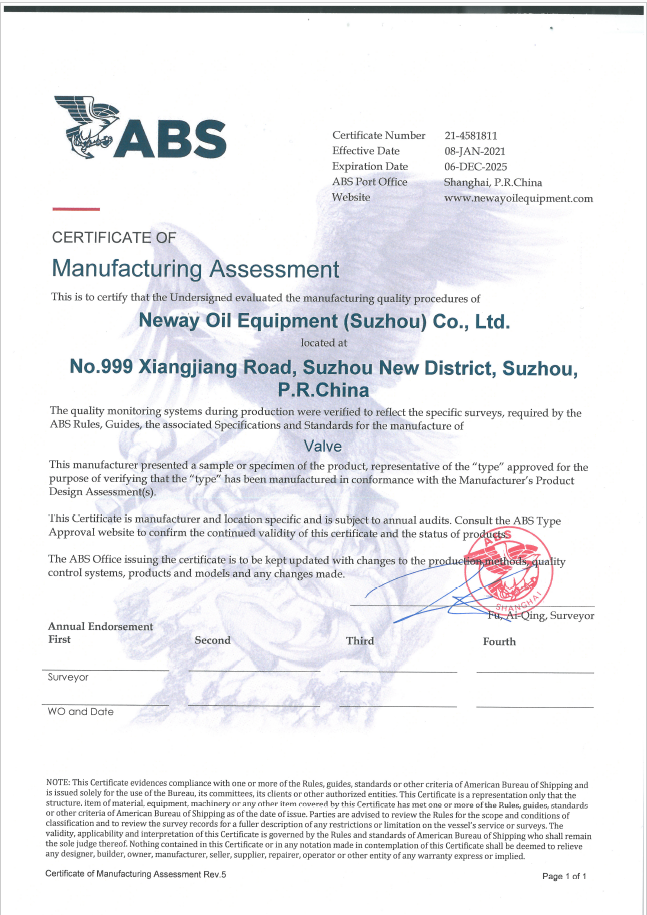 ABS工廠認可 證書