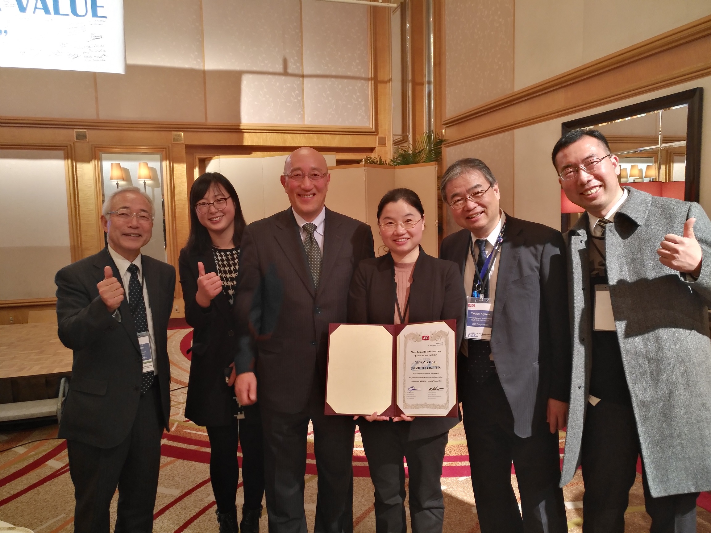 2017年1月19日紐威應(yīng)邀參加了日本工程公司JGC(日揮)在其橫濱總部舉辦的第二屆質(zhì)量論壇,本屆論壇邀請(qǐng)了全球各行業(yè)的制造商參加,包括GE、西門子、斗山、KITZ等知名企業(yè),獲邀請(qǐng)參加的中國(guó)廠家有紐威閥門、上海森松、久立特材三家。 另外,JGC還邀請(qǐng)了Shell日本、AramcoAsia日本、印尼國(guó)家石油、新加坡石化、阿爾及利亞國(guó)家石油等業(yè)主的高層代表出席。 在論壇的主要環(huán)節(jié)“供應(yīng)商質(zhì)量改進(jìn)經(jīng)驗(yàn)分享”中,共有16家企業(yè)分享了自已的質(zhì)量管理經(jīng)驗(yàn),經(jīng)由全體參會(huì)成員投票表決,紐威團(tuán)隊(duì)?wèi){借開放務(wù)實(shí)的企業(yè)文化、嚴(yán)肅認(rèn)真的細(xì)節(jié)管理、極具創(chuàng)意的質(zhì)量活動(dòng)撥得頭籌,被授予了本屆論壇設(shè)置的唯一獎(jiǎng)項(xiàng) ---“最具價(jià)值展示”稱號(hào)。 自2014年12月與JGC進(jìn)行首次質(zhì)量文化交流之后,紐威一直積極推進(jìn)質(zhì)量持續(xù)改進(jìn)活動(dòng),擁有約90年歷史的JGC也十分關(guān)注紐威的變化,與紐威保持積極互動(dòng)并分享其豐富的行業(yè)經(jīng)驗(yàn)。此次紐威的成果展示全部取材與過(guò)去2年內(nèi)的質(zhì)量改進(jìn)實(shí)踐活動(dòng),獲得本屆MVP是JGC及業(yè)內(nèi)各方對(duì)紐威進(jìn)步的認(rèn)可,也是推動(dòng)紐威繼續(xù)前行的積極動(dòng)力! 紐威的目標(biāo)不僅是在短期成果的展示上,更為重要的是要保持長(zhǎng)期的持續(xù)改進(jìn),成為客戶目錄中,具有價(jià)值的供應(yīng)商之一!